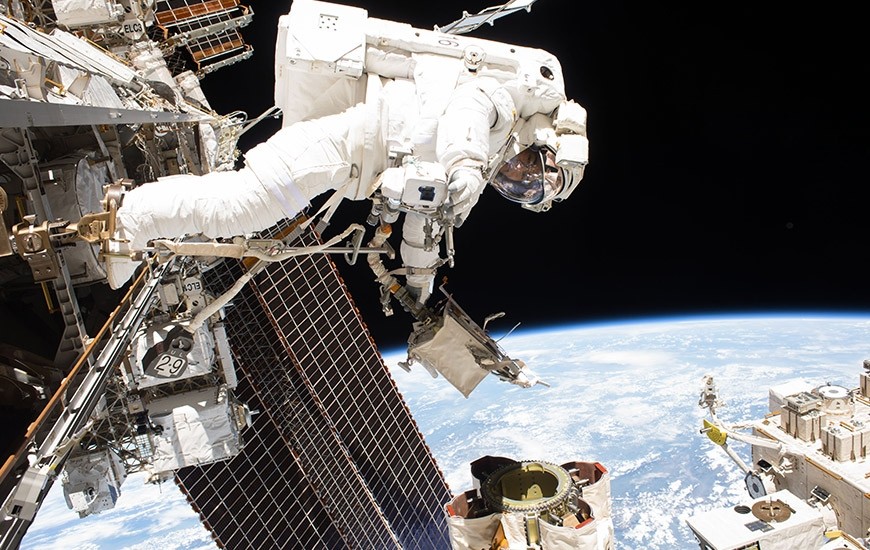 Пример: Марк Томас Ванде Хей, астронавт NASA, использует в открытом космосе бокс для камеры напечатанный на 3D-принтере.