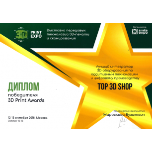 В 2018 г. мы стали лучшим интегратором 3D-оборудования по аддитивным технологиям и цифровому производству по версии 3D Print Awards.