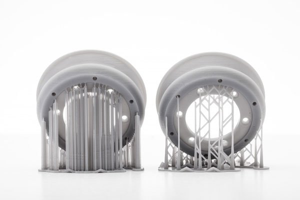 При создании 3D-моделей часто используется так называемый материал поддержки, то есть вспомогательные конструкции из однородного с основным или другого материала. Существуют различные способы удалить материал поддержки после полного окончания процесса печати: мехинический, путем растворения, с помощью растворителей или обычной воды, а также выплавкой.